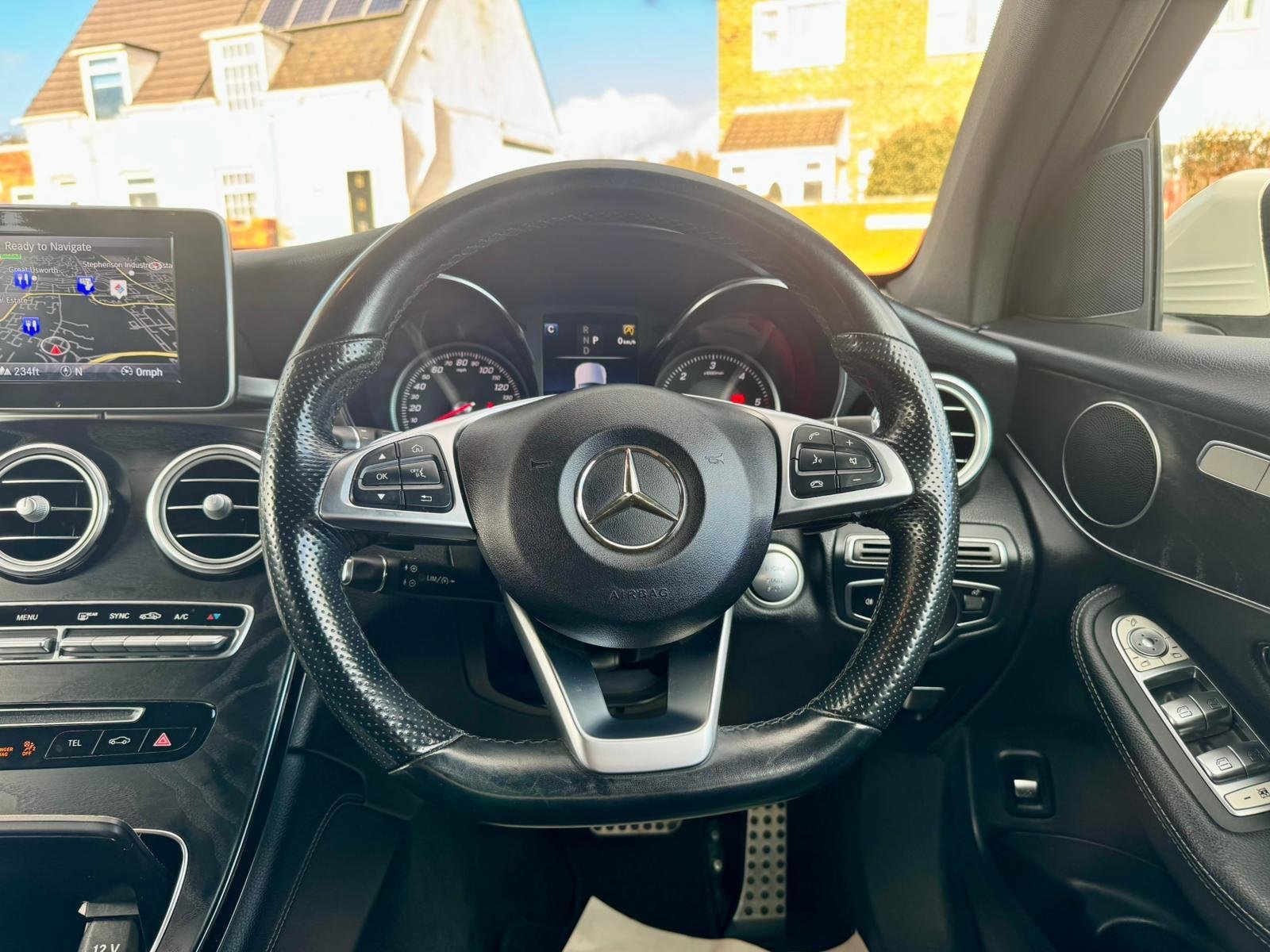- Steering Wheel - 3-spoke Multi-function AMG in Black Leather with Flattened Bottom Section and Chrome Inserts and Perforated Leather in Grip Area